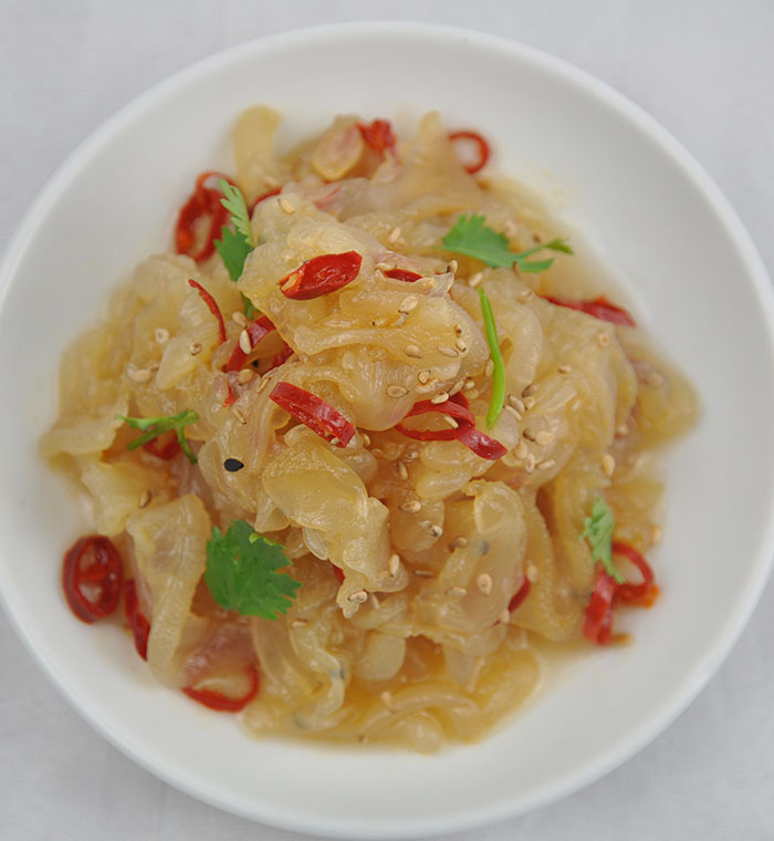 產(chǎn)品特點:精選優(yōu)質(zhì)海蜇,色澤清麗、晶瑩剔透,Q彈有嚼勁、清香酸甜好味道